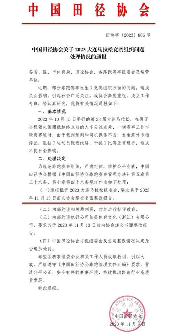 ·中國(guó)田協(xié)通報(bào)大連馬拉松和青島海上馬拉松問(wèn)題處理情況。