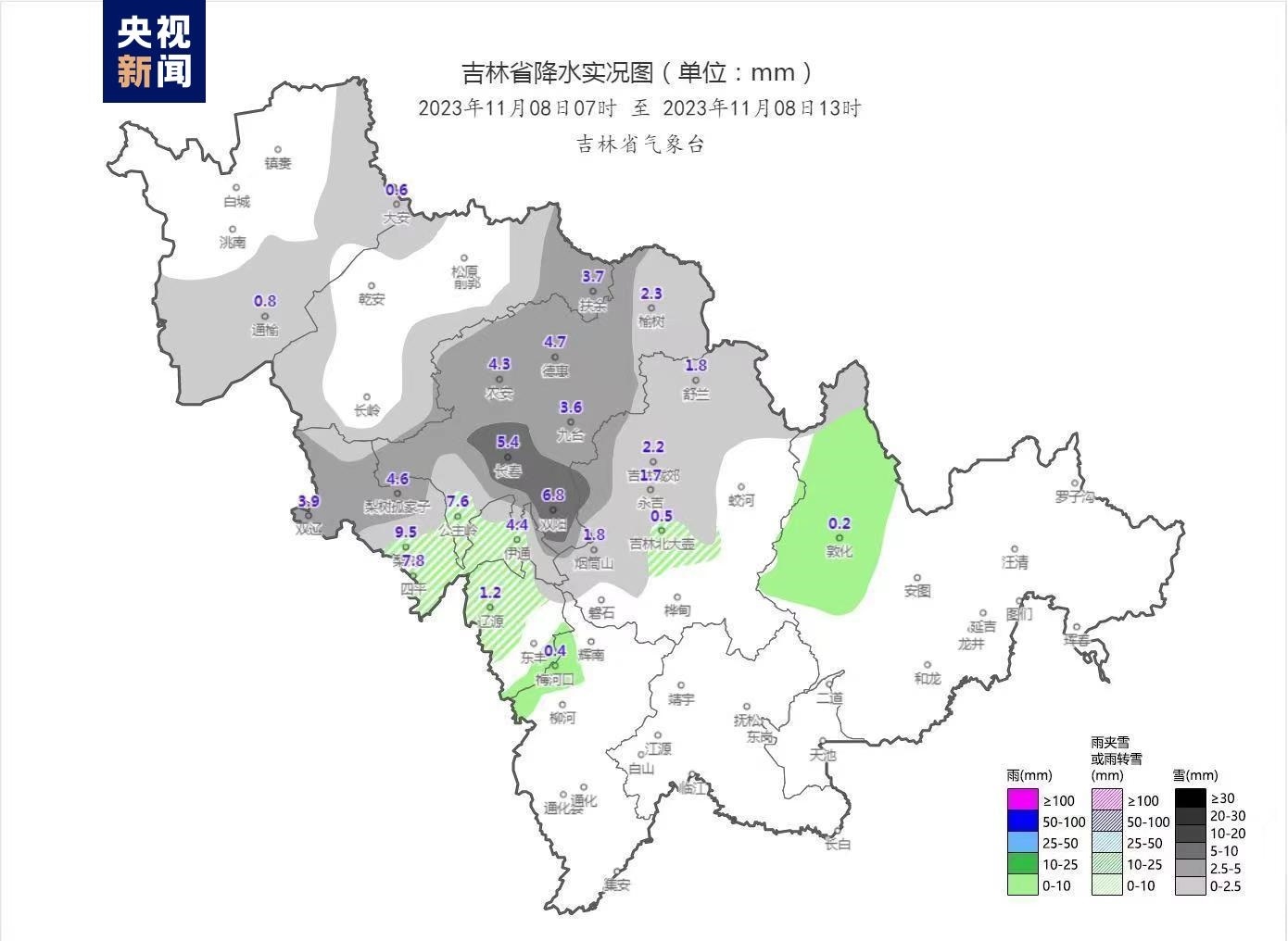 受低空冷切變影響,11月8日早晨開始,吉林省大部出現(xiàn)明顯雨雪天氣,并伴有相態(tài)轉(zhuǎn)換。當前,吉林省大部分地區(qū)出現(xiàn)了積雪,最大積雪深度出現(xiàn)在榆樹市,積雪深度為30厘米。