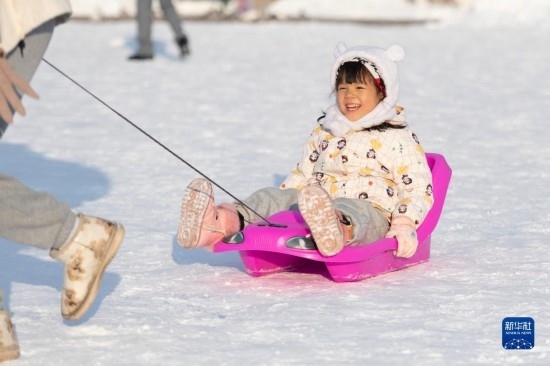 11月9日,小朋友在哈爾濱建筑藝術廣場上游玩。