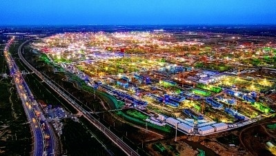 夜幕下,雄安新區(qū)建設(shè)現(xiàn)場(chǎng)的燈光照亮夜空,勾勒出一道道美麗的風(fēng)景線。薛志勇攝