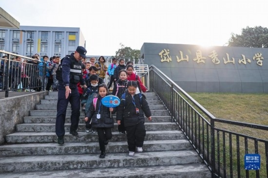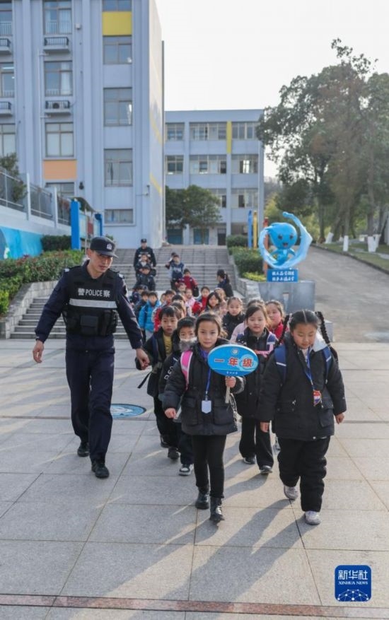 12月20日,秀山派出所民警在秀山小學(xué)放學(xué)時間參與“護學(xué)崗”維持秩序,同時接獨自放學(xué)的學(xué)生去“民生小鋪”。