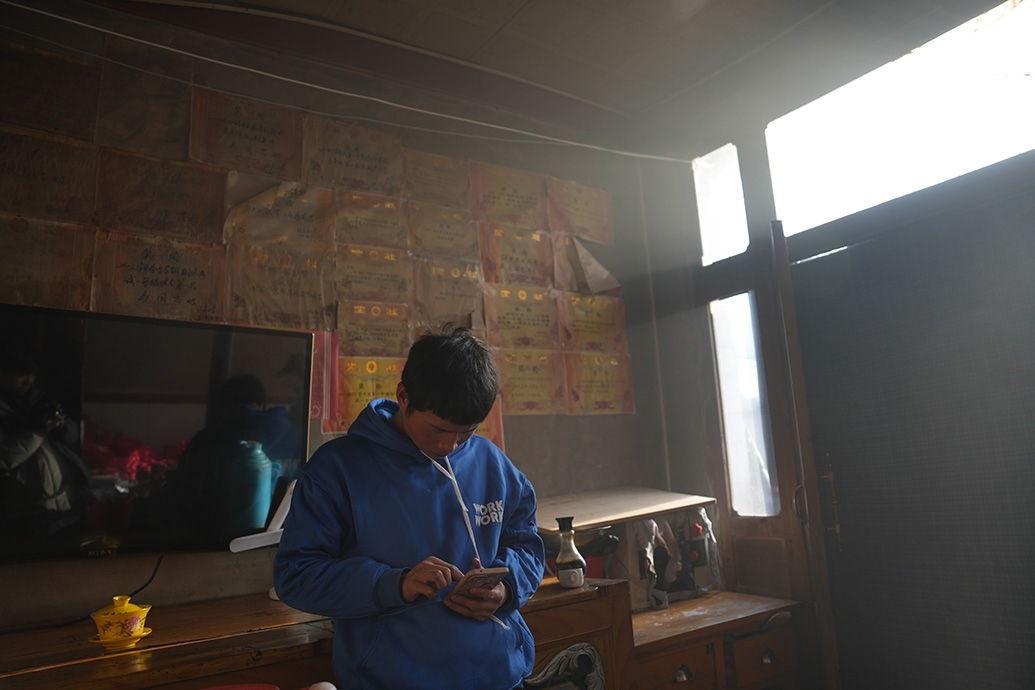 12月23日中午,他坐在炕上,邊聽網課邊做筆記,眼神專注,黝黑的臉上透著高原紅,因為壓力太大還冒了幾顆痘痘。