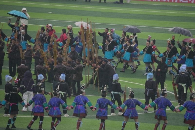 隊(duì)旗招展、蘆笙悅響、鑼鼓喧天……1月6日一早,冒著淅瀝小雨,在貴州省黔東南苗族侗族自治州榕江縣的“村超”球場(chǎng),歡快的多耶舞和炫目的煙花過(guò)后,2024年“村超”賽季正式拉開(kāi)帷幕。