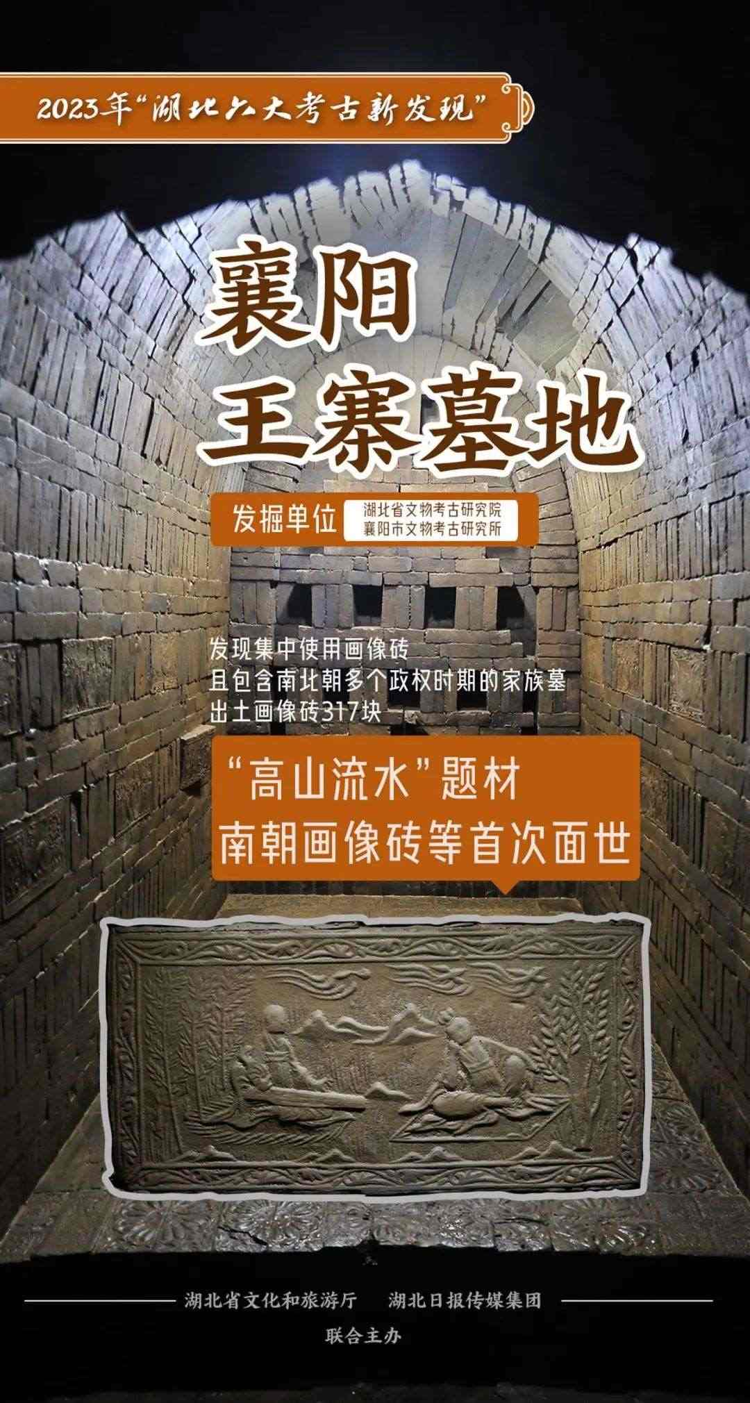 襄陽王寨墓地,發(fā)現(xiàn)一處集中使用畫像磚且年代跨越南、北朝多個政權時期的家族墓,其中7座墓葬出土畫像磚共計317塊,涉及19種不同圖案。首次發(fā)現(xiàn)“高山流水”題材以及“五音直郎”“小輿大駕行”“牽誕馬”榜題的畫像磚。