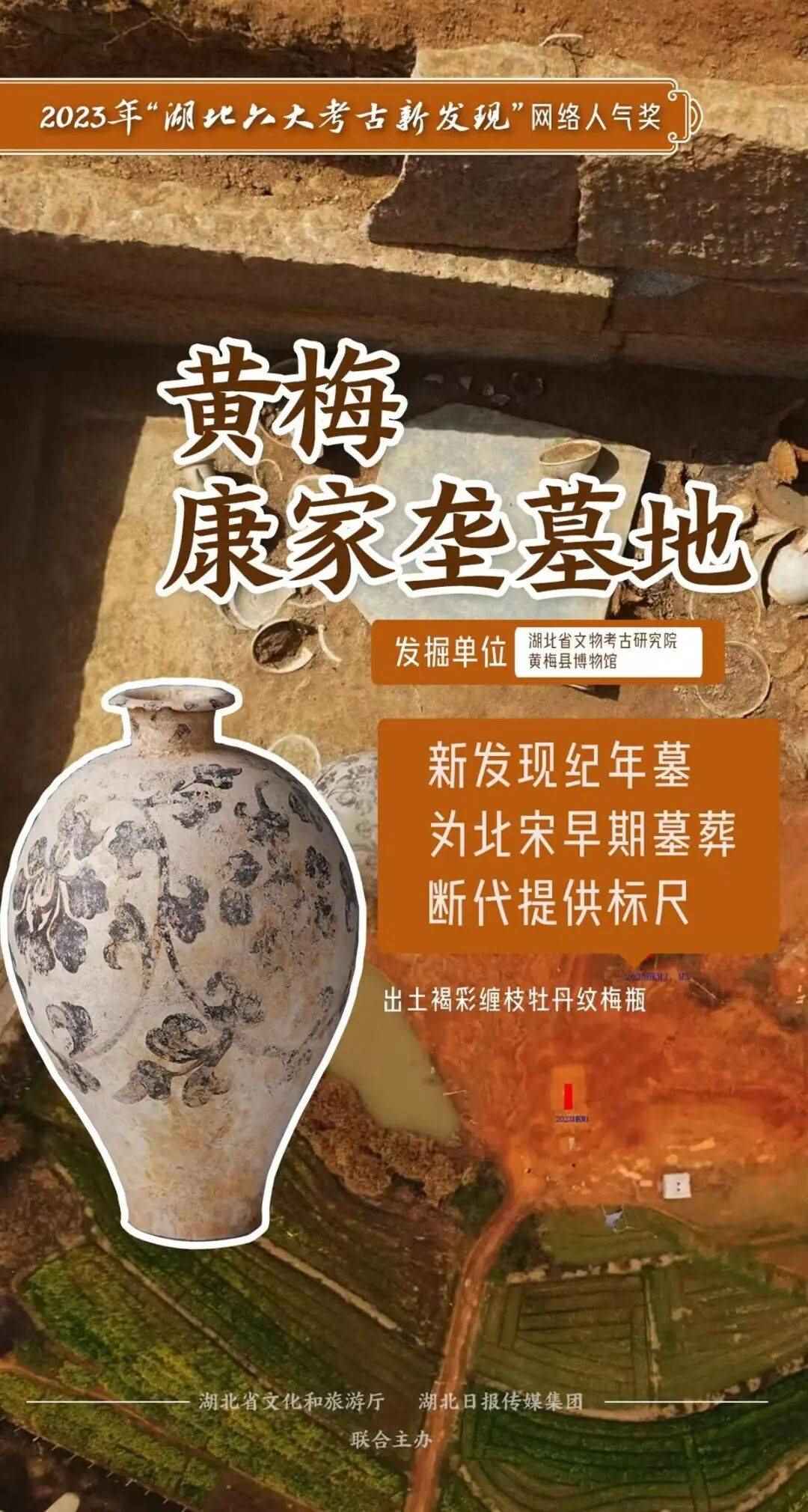 墓地位于黃梅縣濯港鎮(zhèn)程光村三組康家壟,其中M1為北宋紀年墓,為北宋早期墓葬斷代提供標尺,墓葬形制特點突出,出土遺物數(shù)量豐富,尤以褐彩纏枝牡丹紋梅瓶等瓷器最顯珍貴。