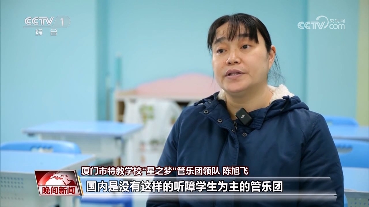 廈門市特教學(xué)校“星之夢”管樂團(tuán)領(lǐng)隊(duì) 陳旭飛:據(jù)我所知的話,國內(nèi)是沒有這樣的聽障學(xué)生為主的管樂團(tuán)。
