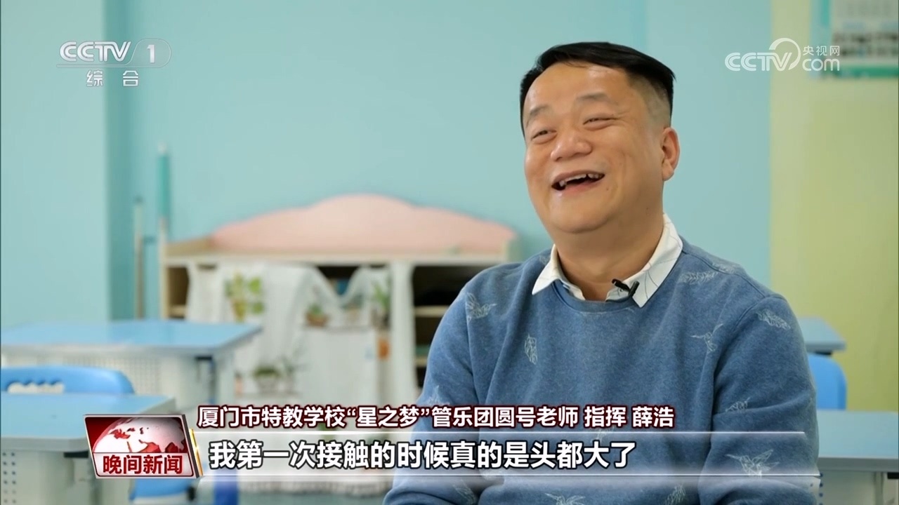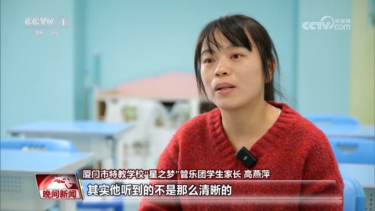 廈門市特教學(xué)?!靶侵畨簟惫軜穲F(tuán)學(xué)生家長 高燕萍:其實(shí)他聽到的不是那么清晰的,但是他會覺得這個聲音很美,他用手語告訴我,他覺得很美。