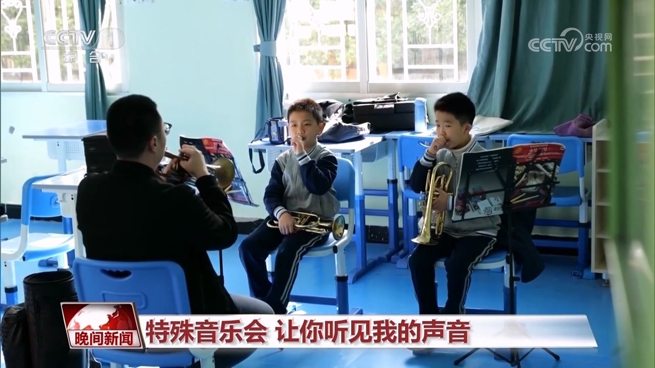 面對這個看似不可能完成的挑戰(zhàn),老師們也在嘗試一個又一個方法,從認(rèn)識五線譜開始,一點(diǎn)點(diǎn)敲開孩子們的無聲世界。慢慢地,老師們驚喜地發(fā)現(xiàn),這些聽障孩子可以用手來感知音樂。有了這個好辦法,老師們會讓孩子把手放在老師肚子上,感受老師吹奏時發(fā)出的氣息,再去觸摸樂器,感受由此產(chǎn)生的振動,通過觸覺感受音樂。