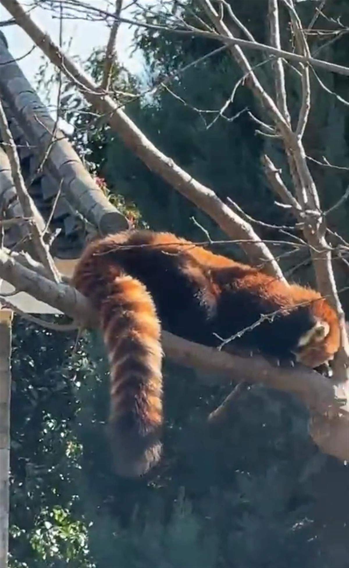 1月25日上午,極目新聞記者聯(lián)系上視頻發(fā)布者,對方解釋稱,其實動物園有兩只小熊貓,它們都藏在樹上了,自己第一眼沒看到,有些驚訝。其中一只小熊貓在視頻的最后三秒也出現(xiàn)了。