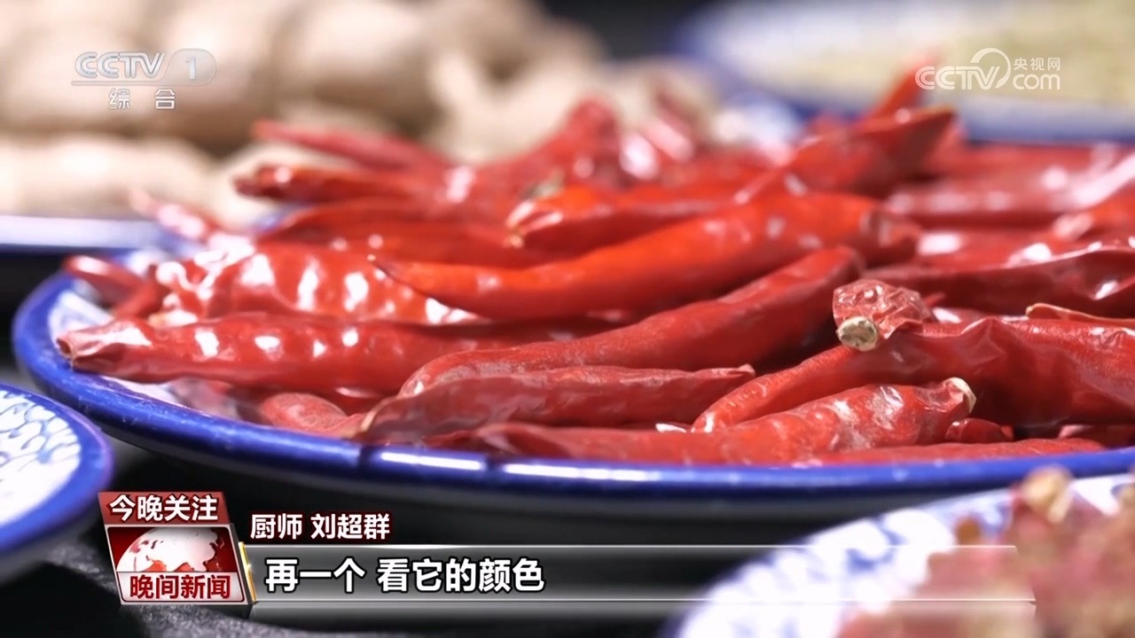 廚師 劉超群:作為我們火鍋雞最主要的原材料之一,這個(gè)(辣椒)主要看兩方面,一是它的辣度,再一個(gè),看它的顏色,這種顏色比較鮮亮的,就證明是新的辣椒。麻椒顆粒的飽滿(mǎn)度,還有表皮的小點(diǎn)是影響它麻度的因素,小點(diǎn)越密集,麻度越高。