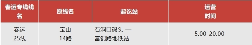 注:石洞口碼頭春運專線運營日期為2月14日至3月5日。