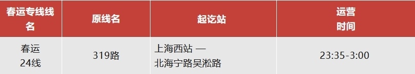 注:上海西站春運專線運營日期為2月14日至3月5日。