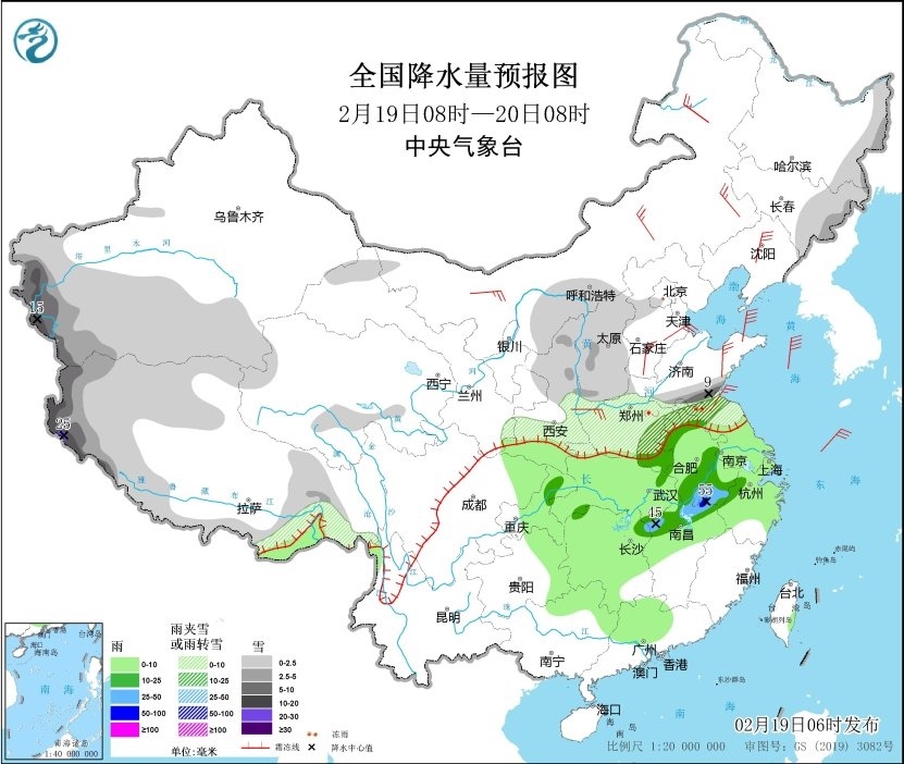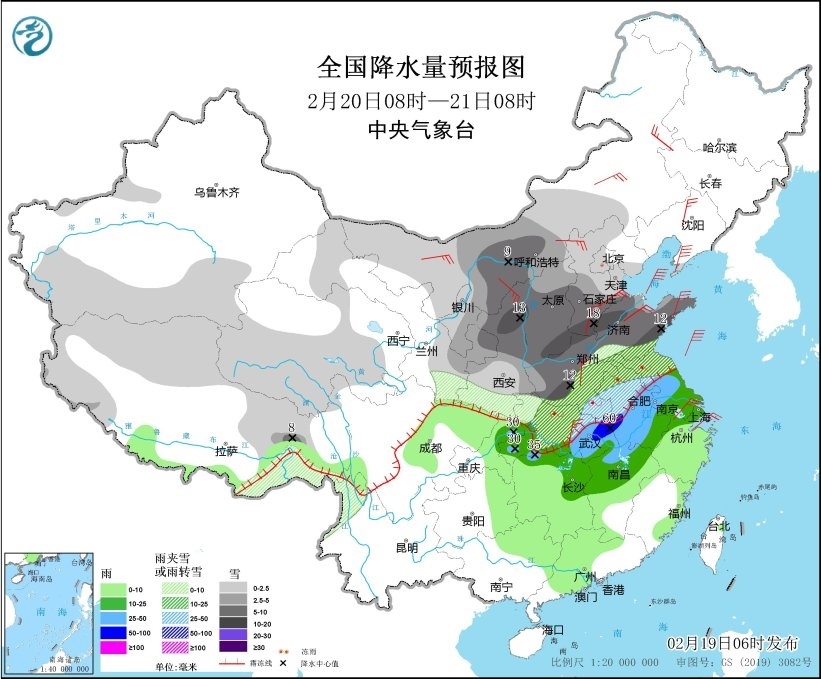 2月19日至22日,中東部地區(qū)將再現(xiàn)大范圍雨雪冰凍天氣。華北西部和南部、黃淮等地有大到暴雪,局地大暴雪;南方雨勢強(qiáng),并伴有雷暴、短時強(qiáng)降水和冰雹等強(qiáng)對流天氣。河南、安徽、湖北、湖南、貴州等地的部分地區(qū)將先后出現(xiàn)凍雨或冰粒。