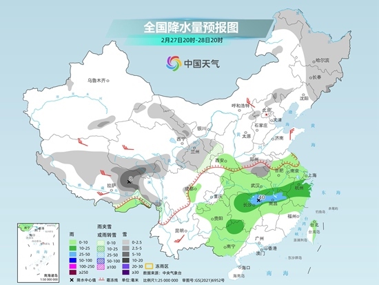 下周,對(duì)于南方地區(qū)來(lái)說(shuō),雨雪范圍依然不小,北方降水也將有所增多,以降雪為主。據(jù)中央氣象臺(tái)中期預(yù)報(bào),未來(lái)10天,南方多陰雨天氣,累計(jì)降水日數(shù)可達(dá)5至7天。江南中西部、華南西部到貴州等地降水最為頻繁,像是廣西桂林陰雨就遲遲不散。其中,28日暖濕氣流加強(qiáng),同時(shí)冷空氣南下,降水范圍北擴(kuò),南方降水強(qiáng)度短暫加強(qiáng)。3月1日降水大幅向南收縮,下周末南方大部可能才會(huì)等來(lái)久違的陽(yáng)光。