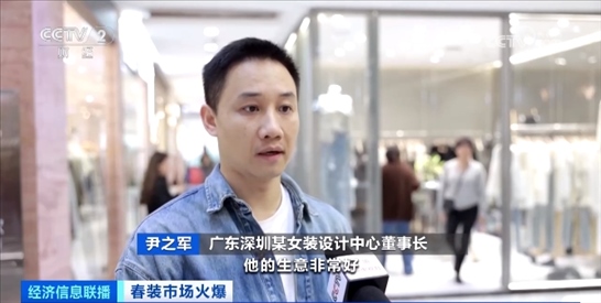 廣東深圳某女裝設(shè)計(jì)中心董事長(zhǎng) 尹之軍:今年的春裝賣得非常好,同比增長(zhǎng)20%左右。因?yàn)樘鞖獾膯栴},夏裝反而沒有想象中那么好,春裝準(zhǔn)備足夠充分的商戶,生意非常好,貨不夠賣。但是只準(zhǔn)備夏裝的商戶,他們現(xiàn)在都在期盼天氣趕緊熱起來(lái)。