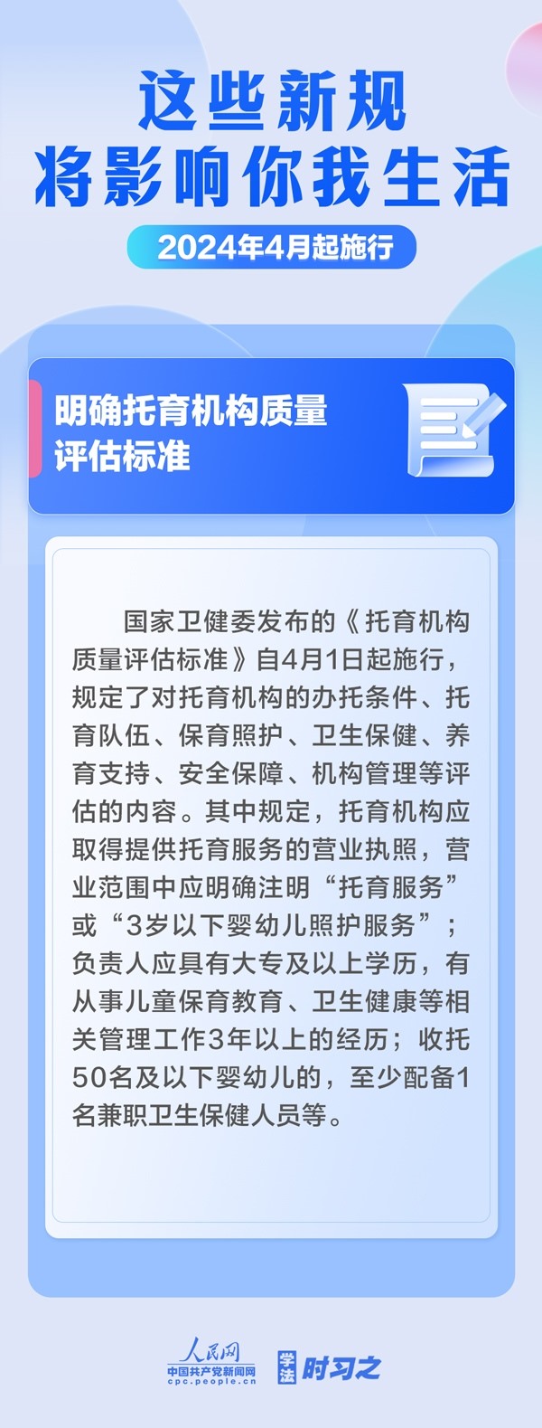 加強中央儲備棉管理;明確托育機構(gòu)質(zhì)量評估標準;規(guī)范可再生能源電量收購……4月起,這些新規(guī)施行,將影響你我生活。