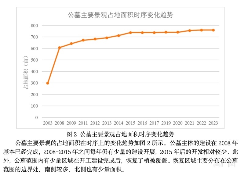 位于青島城陽區(qū)夏莊街道華陰社區(qū)太平山的太平陵公墓,地處嶗山山脈西麓,在嶗山風(fēng)景區(qū)保護范圍內(nèi)。該公墓是1996年經(jīng)民政部門審批的經(jīng)營性公墓,合法審批面積為87.53畝。遙感衛(wèi)星影像分析顯示,該公墓大面積非法擴建已持續(xù)多年,存在毀林挖山建墓地的情況。