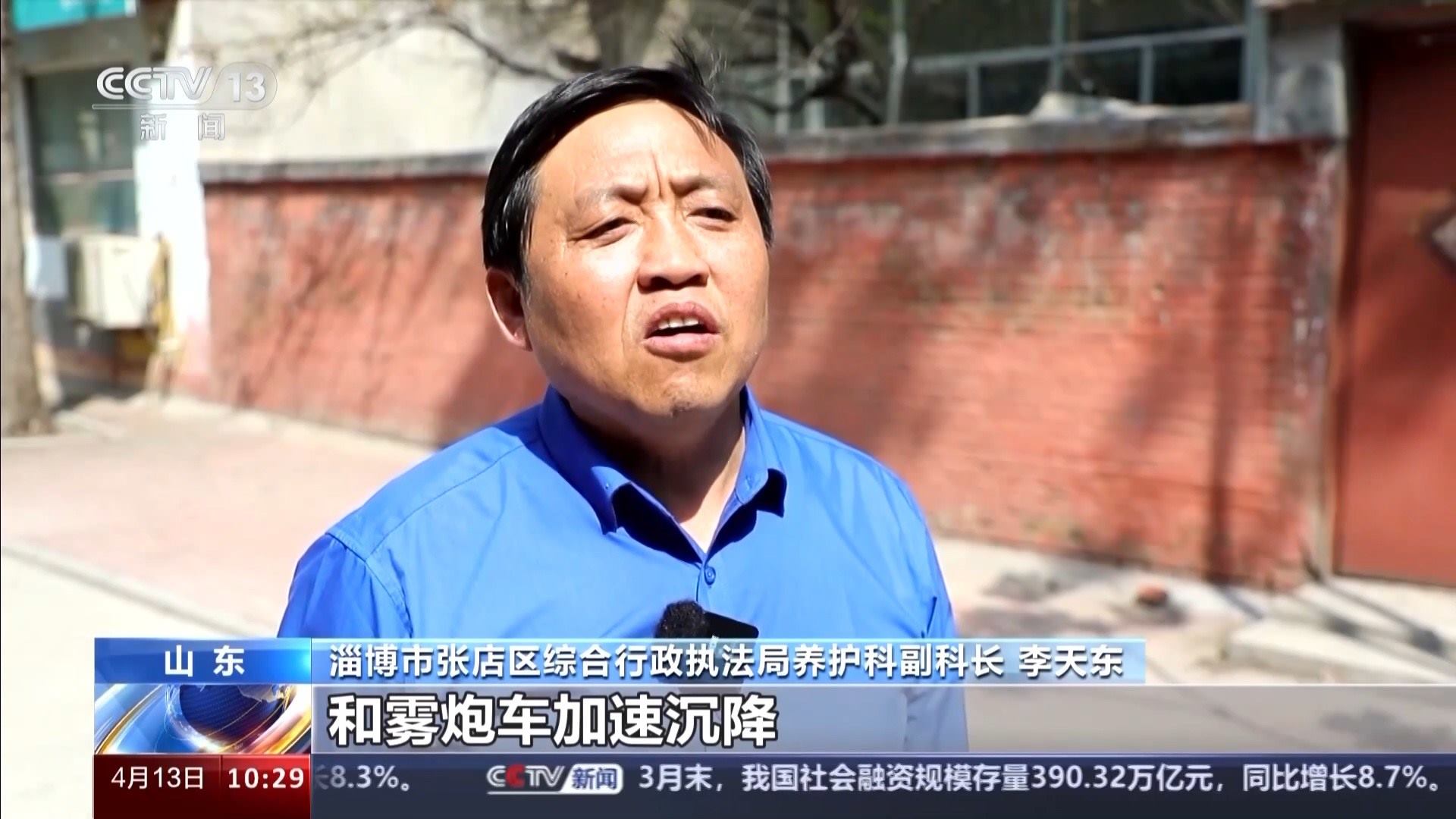 山東淄博市張店區(qū)綜合行政執(zhí)法局養(yǎng)護科副科長 李天東:物理防治就用高壓水車噴淋和霧炮車加速沉降,再就是機掃車和人工結(jié)合及時清理。化學(xué)防治方面主要是采用雌株體花芽抑制劑減少花芽分化。
