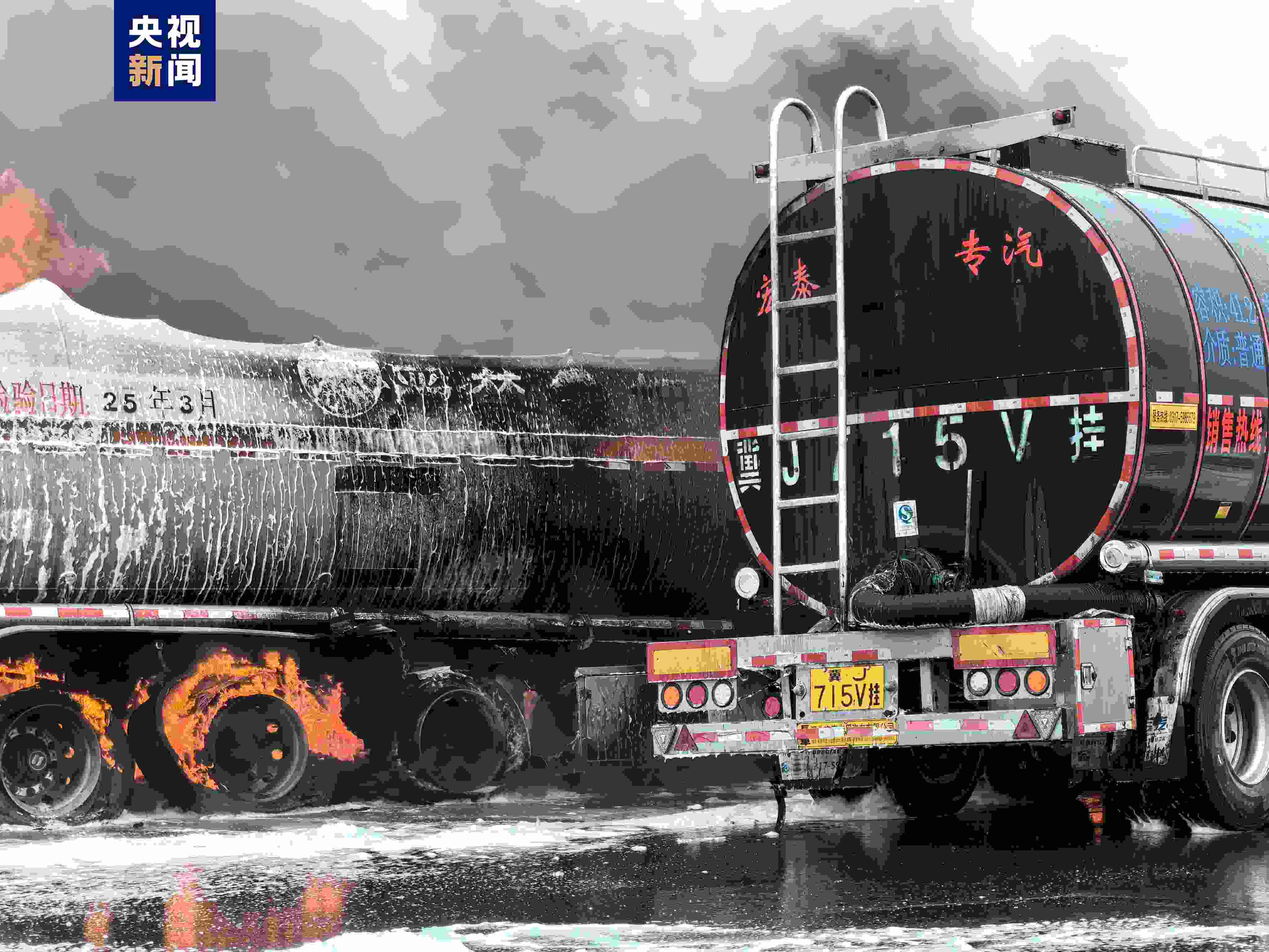 今天(19日)上午,天津市濱海新區(qū)秦濱高速臨港收費(fèi)站出口有兩輛罐車發(fā)生交通事故后起火。經(jīng)偵察,現(xiàn)場為一輛載有潤滑油的罐車與一輛載有柴油的罐車相撞,造成兩輛罐車起火。