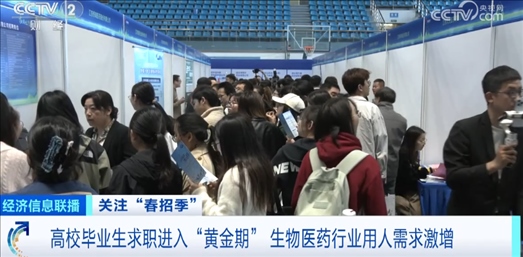 在江蘇南京的一場校園招聘會上,記者看到,生物醫(yī)藥行業(yè)的招聘企業(yè)占據(jù)了整場招聘會接近一半的展位。蔣素梅是一家醫(yī)藥研發(fā)企業(yè)的人力資源負責(zé)人,剛到招聘現(xiàn)場,就有不少學(xué)生前來投遞簡歷。