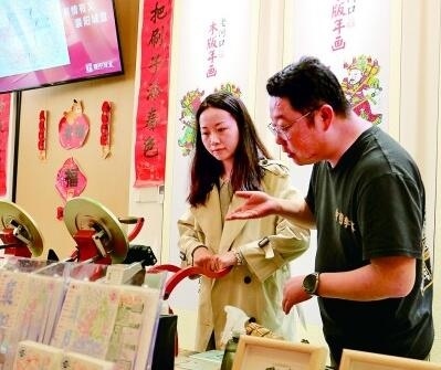 游客在襄陽古城管家巷體驗(yàn)老河口木版年畫文創(chuàng)產(chǎn)品制作。本報(bào)記者 郭冠東攝