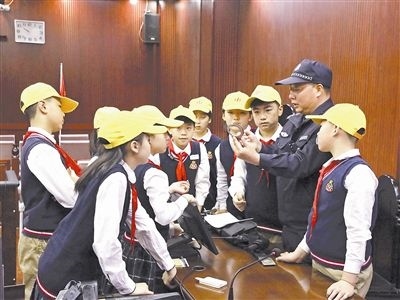 近日,河南省商丘市中級人民法院開設(shè)了一堂法治課,為十余名尋訪研學(xué)的學(xué)生實地講授法律知識。研學(xué)活動中,在法治副校長和法警的帶領(lǐng)下,同學(xué)們依次參觀了審判庭、羈押室、少年審判庭等場所,了解了法庭布置,體驗了單警裝備,學(xué)到了法律知識,“零距離”感受到了法律的崇高與神圣。圖為法警向同學(xué)們展示手銬。