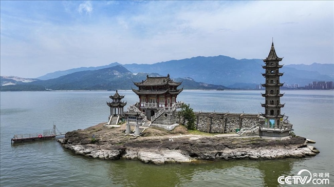 江西鄱陽湖進入豐水期,位于江西省廬山市境內(nèi)的鄱陽湖標(biāo)志性景觀落星墩,隱入湖中成為“水中樓閣”。