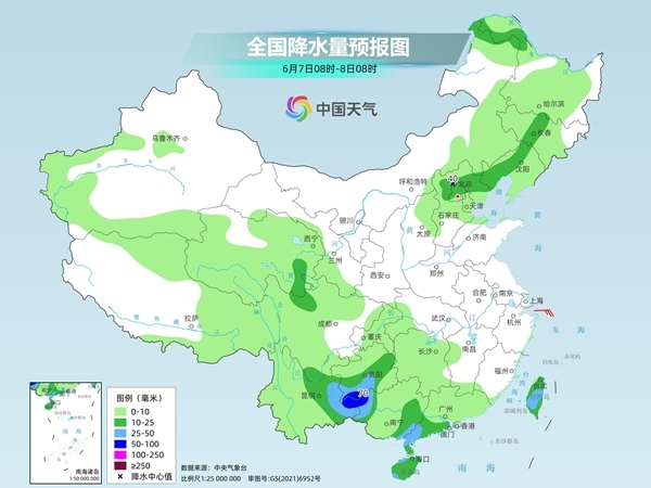 明天,內(nèi)蒙古東北部、東北地區(qū)西部、青海南部、華北北部、川西高原北部、西南地區(qū)南部、華南北部和南部、臺灣島等地部分地區(qū)有中到大雨,其中,貴州西南部、云南東南部、廣西西北部等地部分地區(qū)有暴雨(50~70毫米)。
