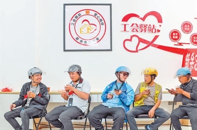 外賣騎手、快遞員、環(huán)衛(wèi)工人、建筑工人等戶外勞動(dòng)者,在守護(hù)城市美好生活的同時(shí),也面臨“吃飯難、喝水難、休息難、如廁難”等現(xiàn)實(shí)困難。為進(jìn)一步滿足戶外勞動(dòng)者的現(xiàn)實(shí)需求,2023年7月,全國(guó)總工會(huì)啟動(dòng)工會(huì)驛站“雙15工程”,提出努力實(shí)現(xiàn)2023年底全國(guó)工會(huì)驛站達(dá)到15萬個(gè),在全國(guó)主要城市和城市重點(diǎn)區(qū)域基本實(shí)現(xiàn)工會(huì)驛站15分鐘服務(wù)圈交叉覆蓋的工作目標(biāo)。
