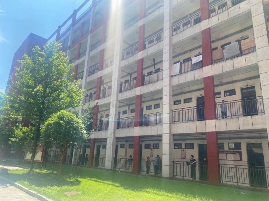 6日凌晨,垸內(nèi)居民被陸續(xù)轉(zhuǎn)移至各安置點(diǎn)。肖菊香和丈夫被安排在華容縣職業(yè)中專(zhuān)的宿舍一樓居住,房間里有涼爽的空調(diào)和獨(dú)立衛(wèi)浴。臨近中午,他們的兒女從遠(yuǎn)方趕來(lái)探望。記者看到,宿舍樓里還有一群學(xué)生志愿者,他們給轉(zhuǎn)移群眾送來(lái)了盆子、桶子等生活用品,不一會(huì),又給大家搬來(lái)小桌椅和公用插排,方便手機(jī)充電。