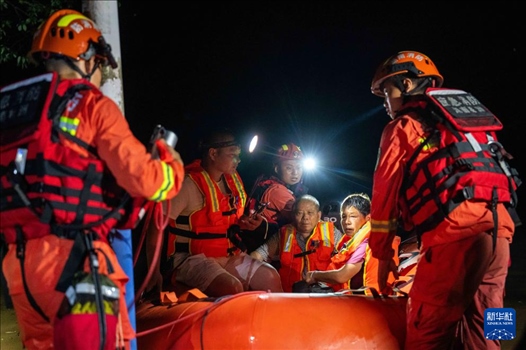 7月29日凌晨,在湖南省湘潭縣易俗河鎮(zhèn)四新堤附近,搶險(xiǎn)人員在轉(zhuǎn)移被困群眾。新華社記者 陳思汗 攝