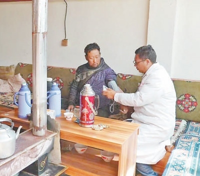 達(dá)頓(右)入戶為群眾檢查身體。次仁多吉攝