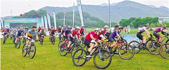 10月19日,2024中國山地自行車公開賽(杭州站)在杭州市蕭山區(qū)戴村鎮(zhèn)鳴槍開賽,來自全國各地的數(shù)百名山地自行車選手在山野中比拼速度、技巧和耐力。 浙江日報記者 董旭明 通訊員 任舒婷 攝