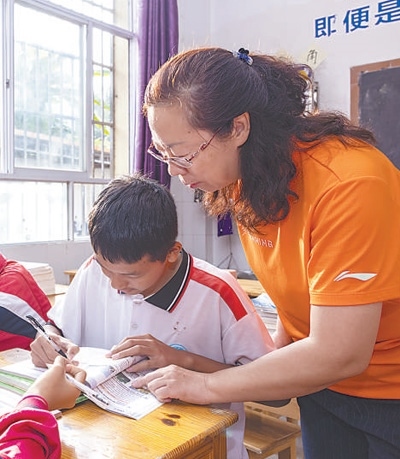 張明明輔導(dǎo)學(xué)生學(xué)習(xí)。楊幫慶攝