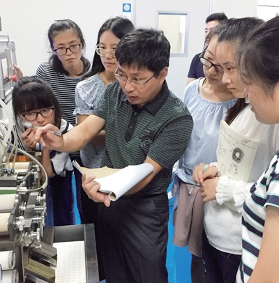 醫(yī)藥學(xué)院學(xué)生在老師的指導(dǎo)下實(shí)習(xí)。