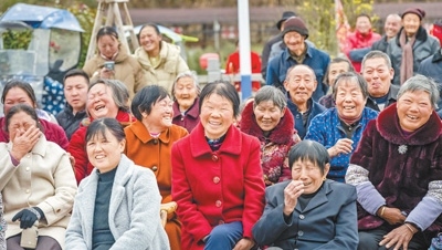湖北省黃岡市英山縣楊柳灣鎮(zhèn)翻身灣村,觀看采茶戲的村民喜笑顏開。英山采茶戲是湖北極具特色的地方劇種,被列入湖北省第二批省級非物質文化遺產(chǎn)名錄。王 江攝(人民視覺)