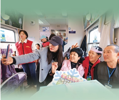 為讓銀發(fā)旅游更加精彩,銀發(fā)旅游列車不僅注重適老化改造,還通過特色主題表演,為老年游客帶來豐富的旅行體驗。在Y471次熊貓旅游專列上,游客們可以欣賞到別具特色的川劇變臉。在黑龍江的冰雪旅拍主題旅游列車上,車廂內(nèi)融合哈爾濱各類景點進行主題場景設(shè)計,老年游客只需掃碼預(yù)約便可換上不同風格的服裝在車廂內(nèi)拍照打卡。列車上,老年游客不僅樂趣十足,還留下許多美好回憶。