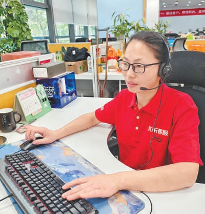 5月15日下午4點半,江蘇宿遷,許春香正面帶微笑與客戶溝通,她頭戴耳麥,眼睛緊盯屏幕,手指在鍵盤上靈活跳動。