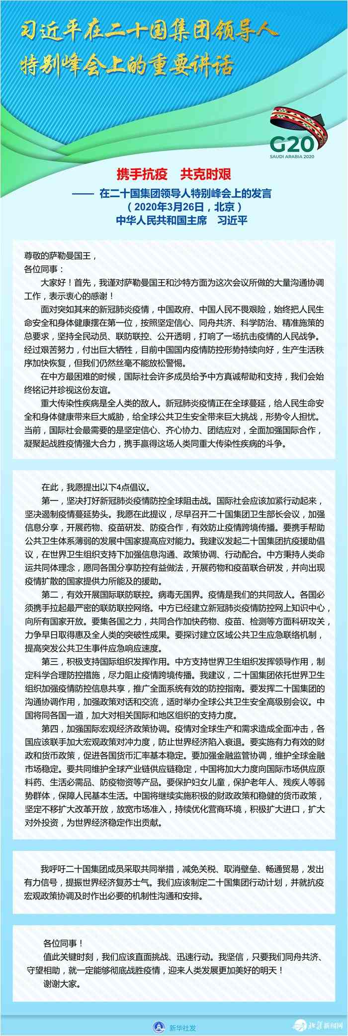 習近平在二十國集團領(lǐng)導人特別峰會上的重要講話(全文)