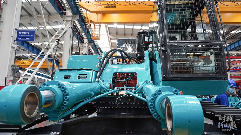 △山河智能生產(chǎn)車間組裝的大型挖掘機,能適應(yīng)多種復雜地形作業(yè)。(總臺央視記者郭曉龍拍攝)