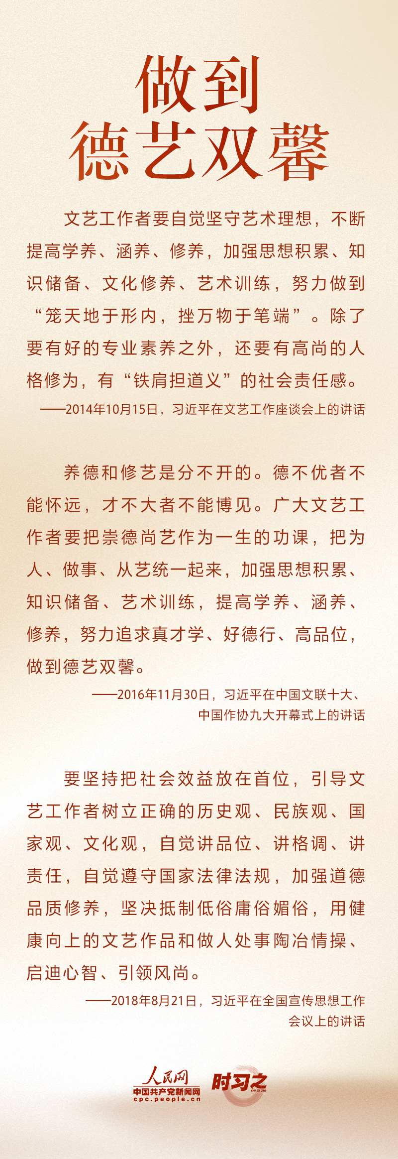 文運同國運相牽,文脈同國脈相連。新時代文藝工作者承擔著記錄新時代、書寫新時代、謳歌新時代的重大使命。“文藝是鑄造靈魂的工程,文藝工作者是靈魂的工程師?!秉h的十八大以來,習近平不斷激勵文藝工作者不辜負時代召喚、不辜負人民期待,以德服人、以文化人。