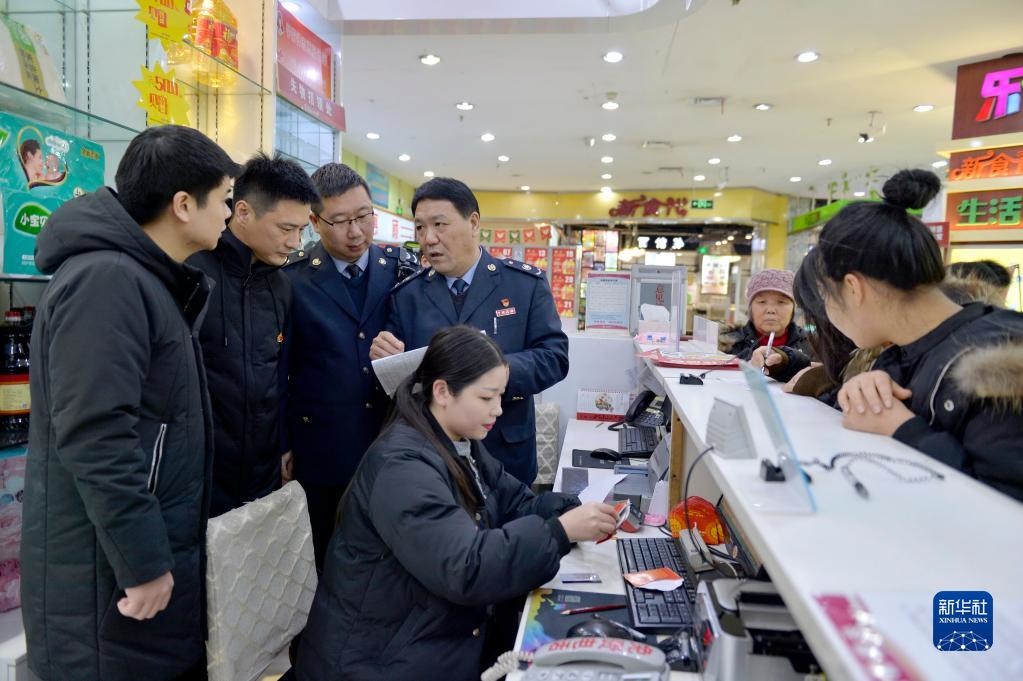 河北寧晉縣紀檢干部與稅務(wù)稽查人員在當?shù)匾患页袡z查是否有單位公款購買購物卡情況(2018年12月29日攝)。新華社記者 牟宇 攝