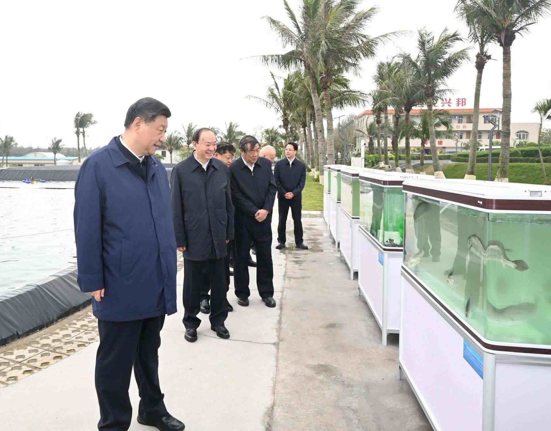 △2023年4月10日,習(xí)近平總書記在廣東湛江國家863計劃項目海水養(yǎng)殖種子工程南方基地考察調(diào)研。