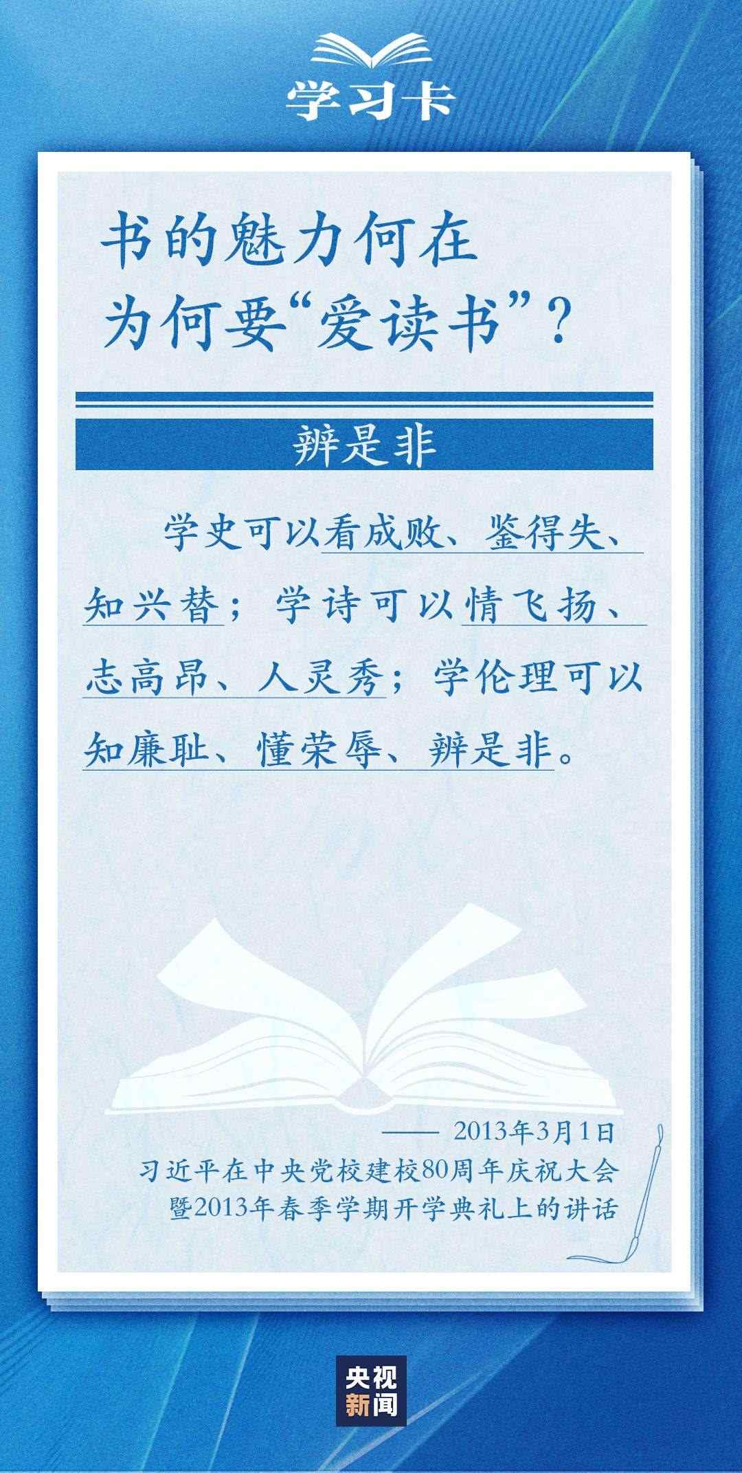 今天(4月23日)是世界讀書日。習近平曾多次講述和書籍的不解之緣,分享讀書學習的感悟,倡導“愛讀書、讀好書、善讀書”。書的魅力何在,為何要“愛讀書”?如何能“選好書”?怎樣“善讀書”?一起學習↓