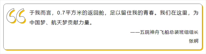 這是張舸在關(guān)艙門前送給航天員的祝福。飛船即將起飛,張舸從塔架撤離,回望一眼飛船,那一刻,責(zé)任感與使命感油然而生:“是所有航天人幾年的辛苦付出,我們才有機(jī)會在發(fā)射前同航天員道一句祝福?!?/p>