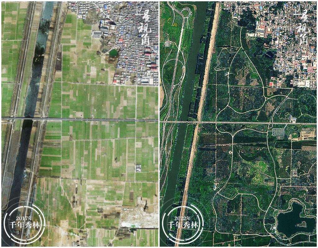未建城,先植綠,千年大計(jì)從“千年秀林”開始。2017年11月13日,雄安新區(qū)“千年秀林”9號地塊栽下第一棵樹。如今,“千年秀林”工程累計(jì)造林47萬畝,悅?cè)莨珗@等一批高品質(zhì)休閑設(shè)施投用,雄安新區(qū)森林覆蓋率由11%提高到34%,營造出“城在林中,人在景中”的意趣。