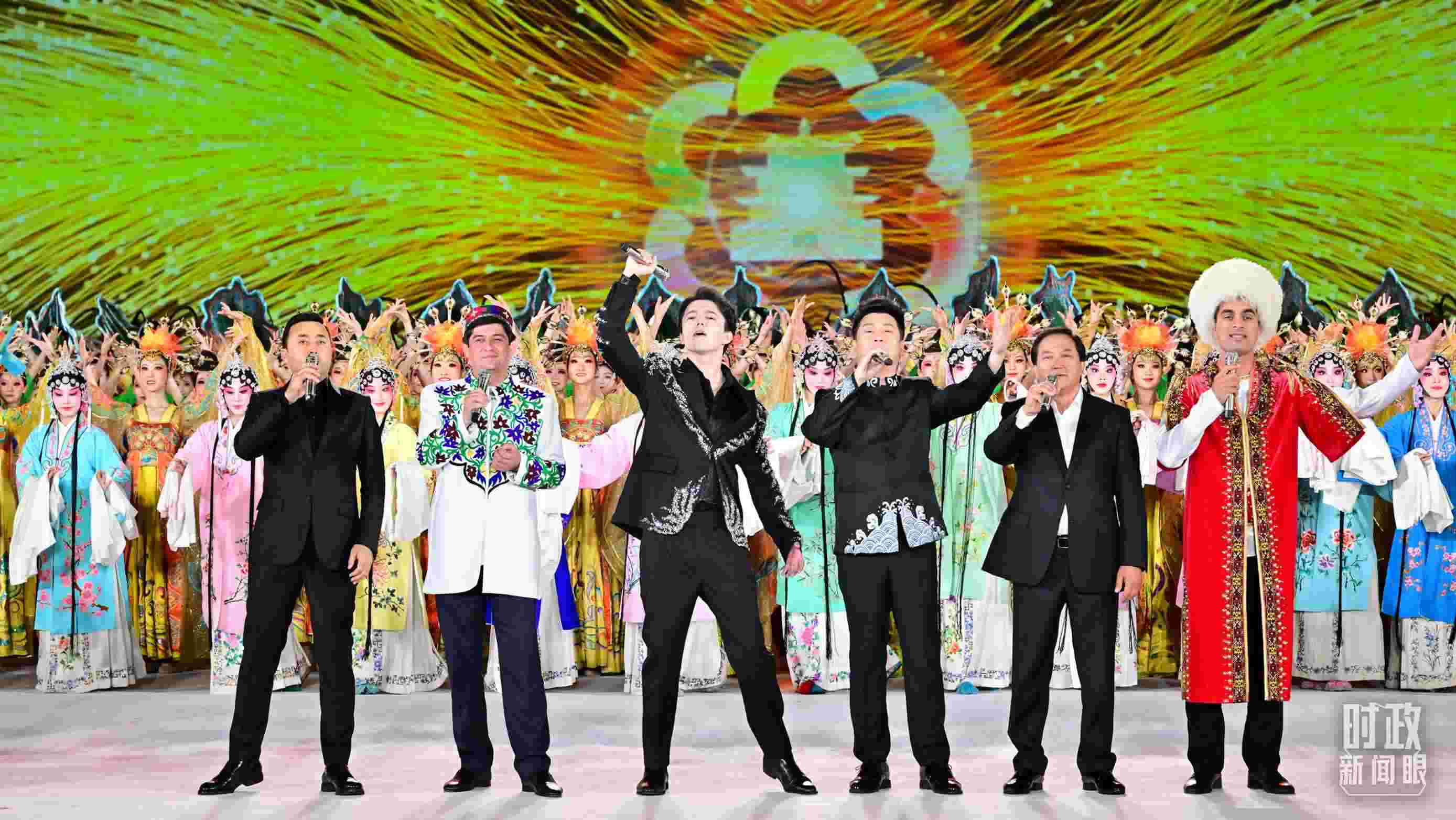 △來(lái)自中國(guó)和中亞五國(guó)的歌手聯(lián)袂演唱《美美與共》。(總臺(tái)記者孫楠拍攝)