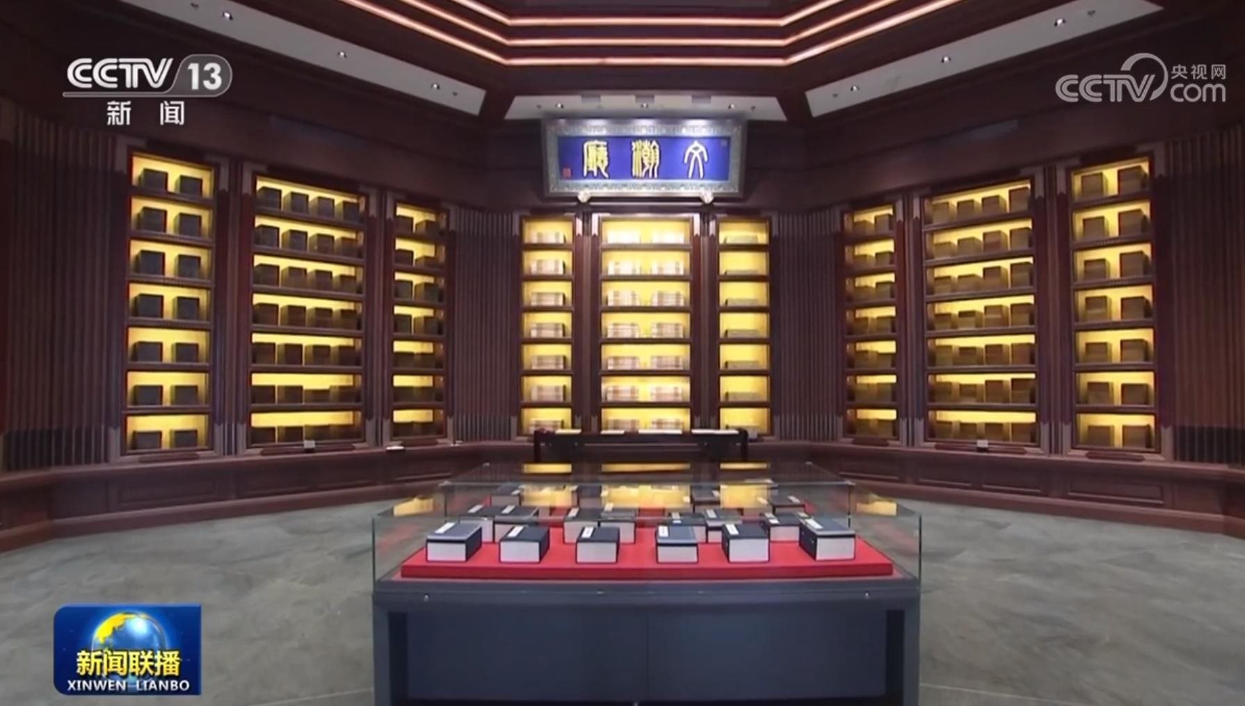 ▲圖為總書記參觀的“《四庫(kù)全書》合璧”庫(kù)展展品。
