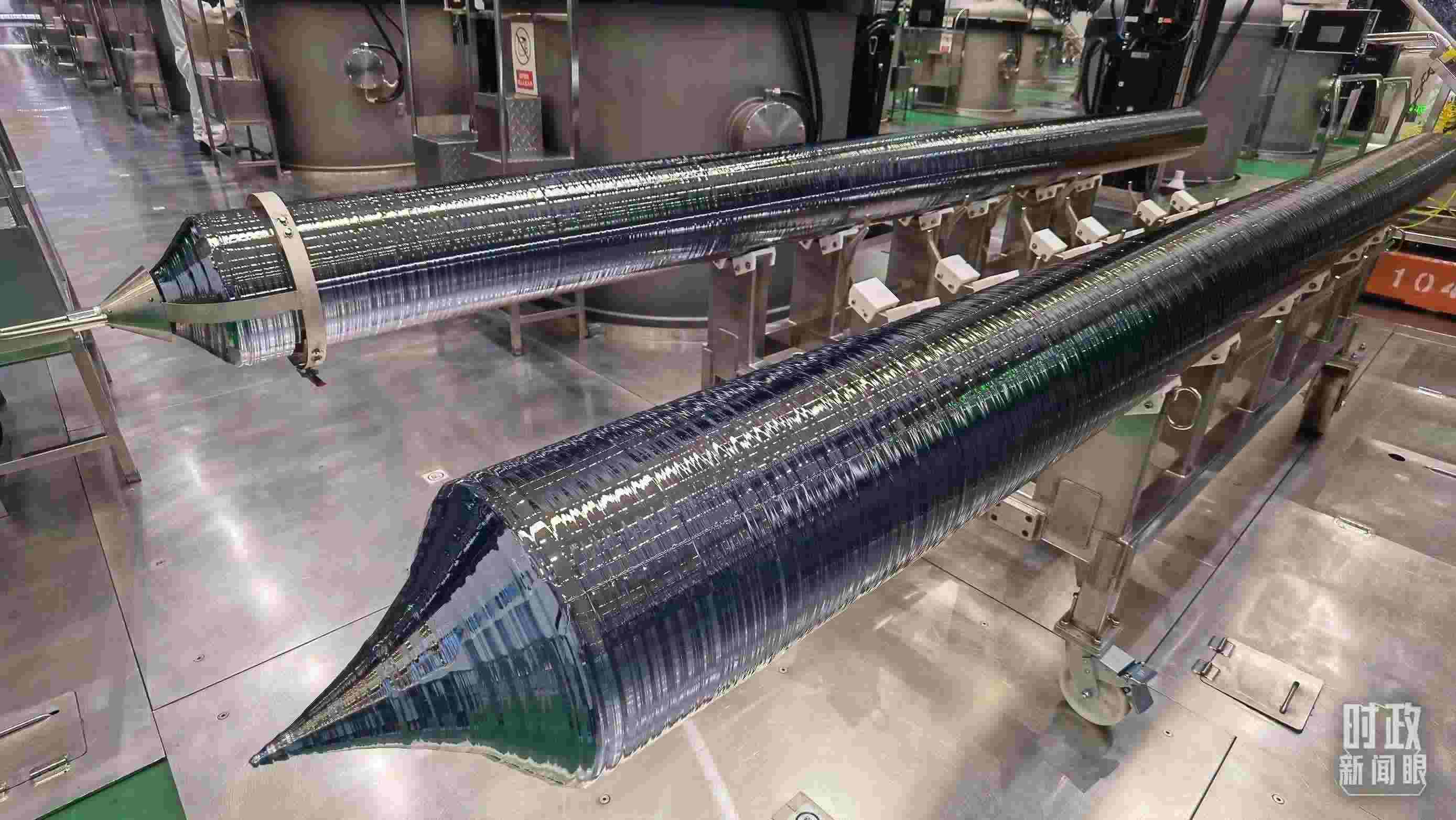△園區(qū)企業(yè)生產(chǎn)的光伏單晶硅棒。(總臺央視記者石丞拍攝)