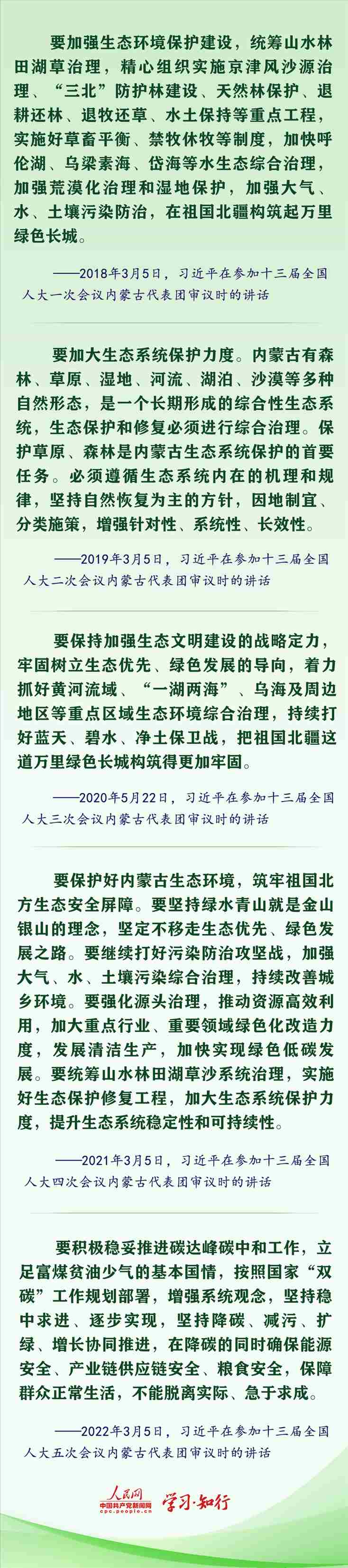 2019年3月,也是在內(nèi)蒙古代表團(tuán),總書記曾談到,內(nèi)蒙古有森林、草原、濕地、河流、湖泊、沙漠等多種自然形態(tài),是一個(gè)長(zhǎng)期形成的綜合性生態(tài)系統(tǒng),生態(tài)保護(hù)和修復(fù)必須進(jìn)行綜合治理。